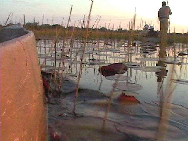 Pushing through the reeds in our mokoro