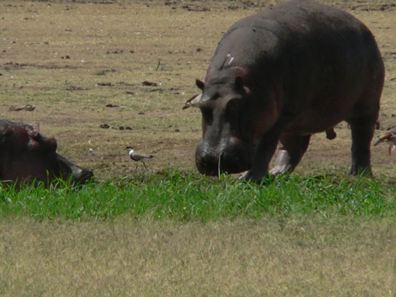 this hippo was chased out of the water after loosing a fight