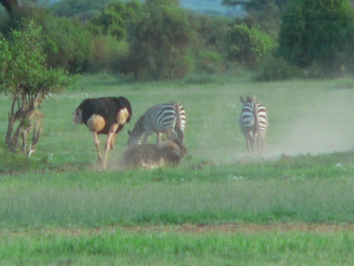 the ostriches are dust-bathing