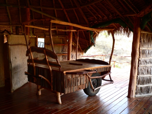 and partially covered with a thatched roof.