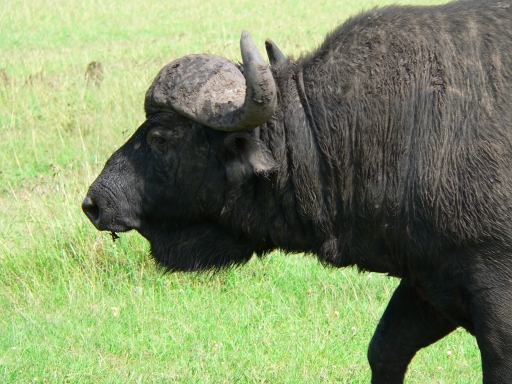 a very old buffalo past his prime with a sagging dewlap and rough skin gives this "dagga boy" his character