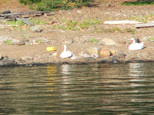 a swan family in the shingle fields