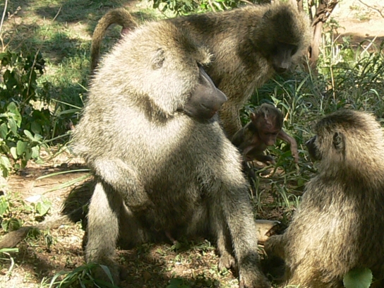 baboons spend the day on the ground looking for food