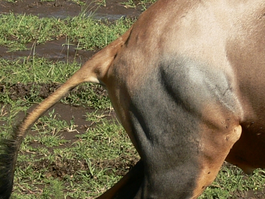 patch on the flank that shimmers in purple