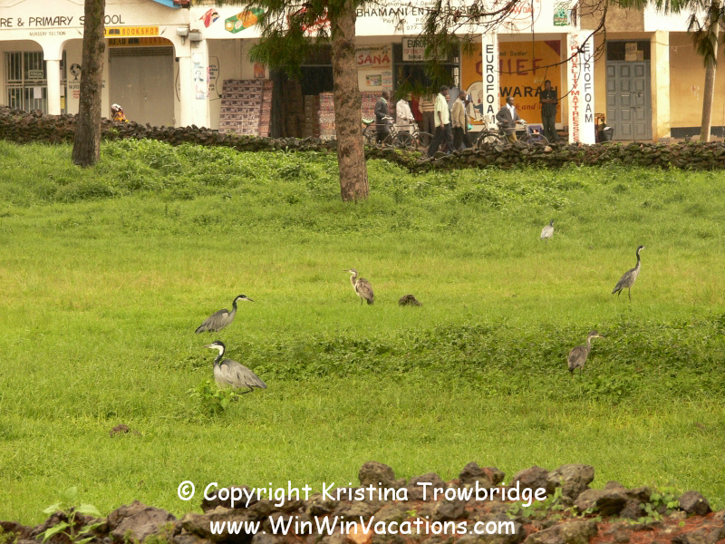 herons in downtown Kisoro