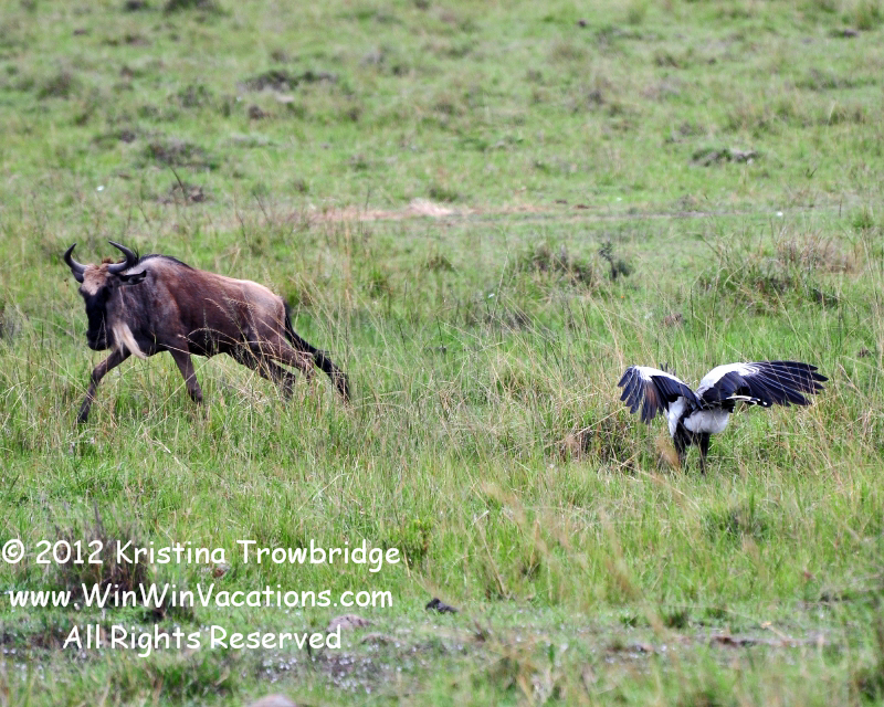 Young Wildebeest and Secretarybird
