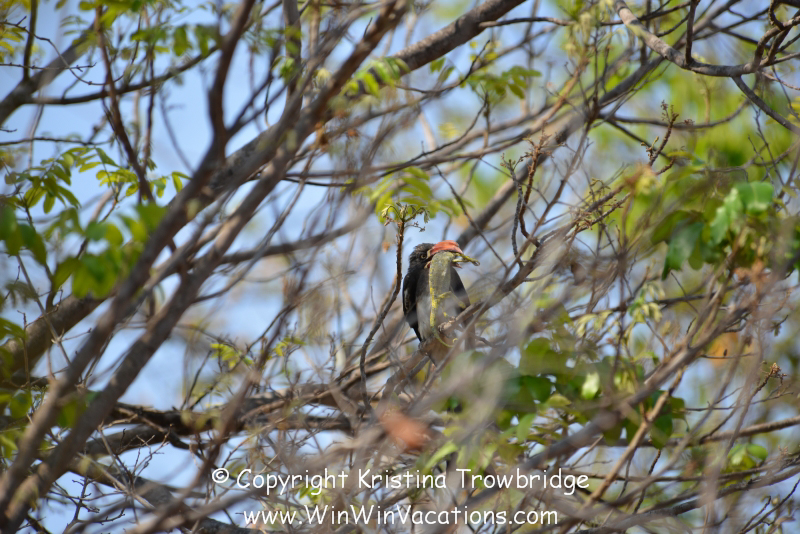 Crowned Hornbill with a Chameleon for Lunch