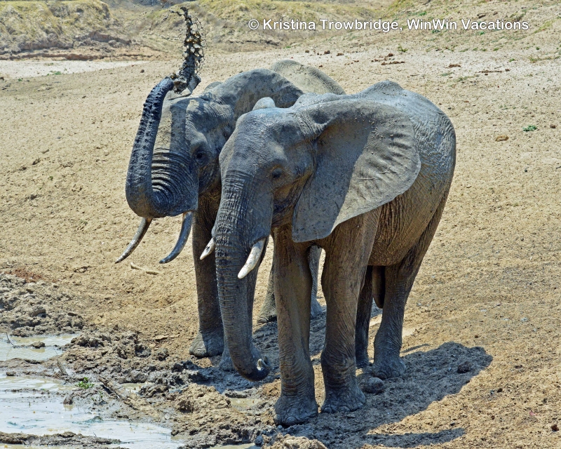 Elephant spraying mud