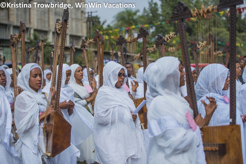 Choir singing and playing the Begena