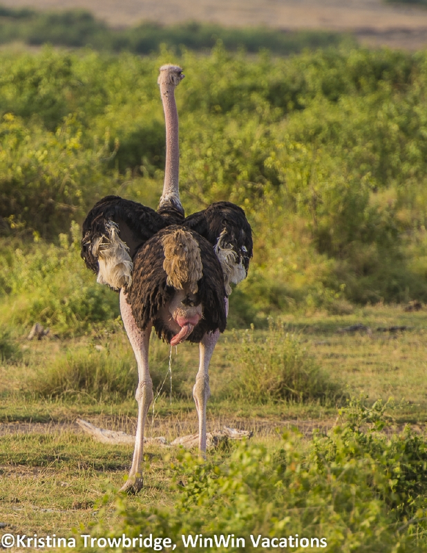 Male ostrich in heat at sunset