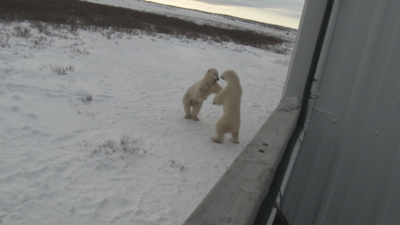 Sparring bears at the lodge