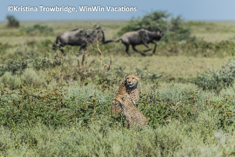 Cheetah mom watching migration