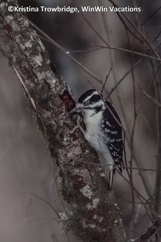 Redpoll, Downey Woodpecker & Totem Pole