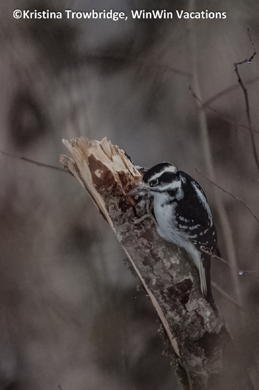 Redpoll, Downey Woodpecker & Totem Pole