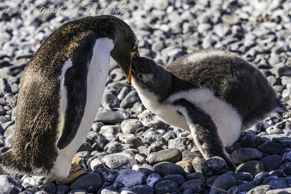 Feed me, Gentoo penguins on the beach