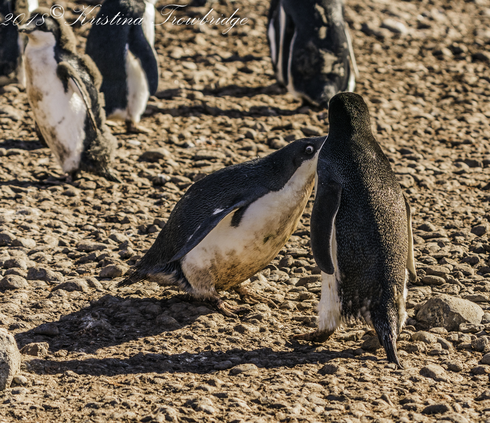 Adelie Penguin mom running from her chick