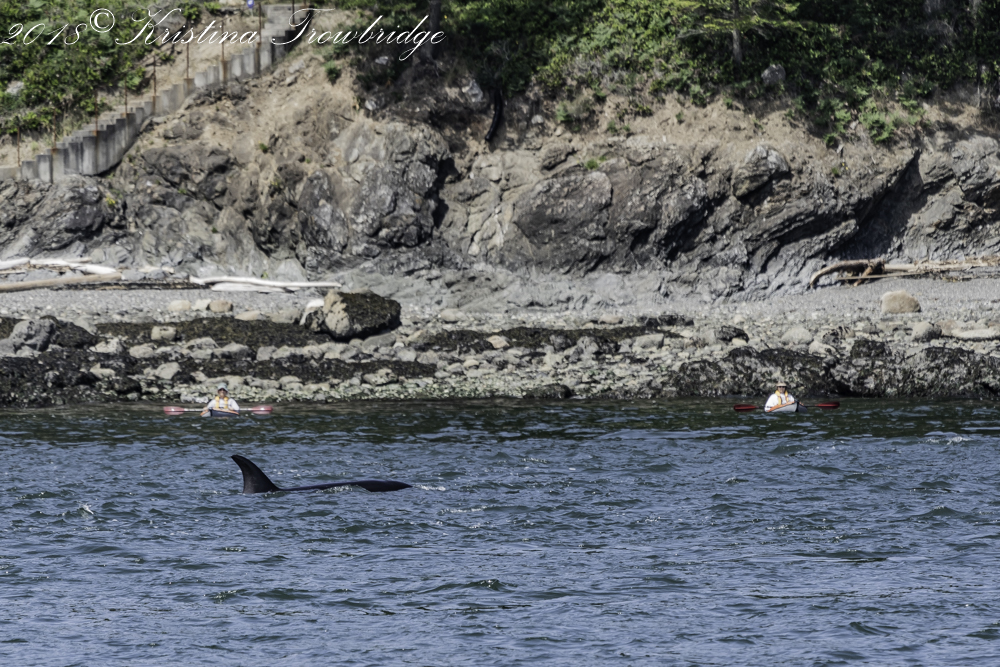 Killer whale and kayakers