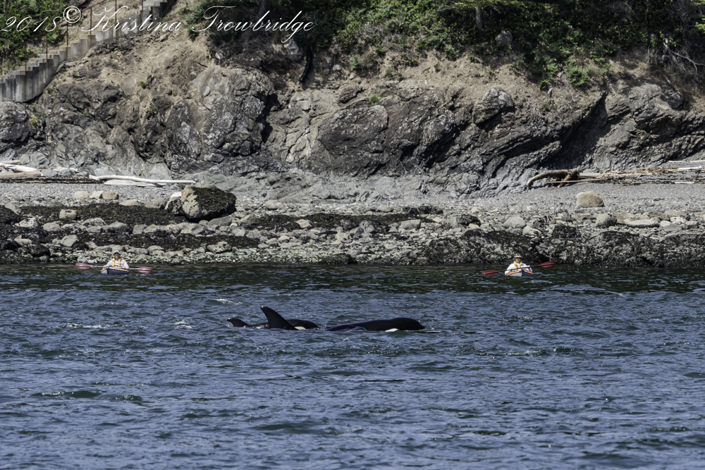 Killer whale and kayakers