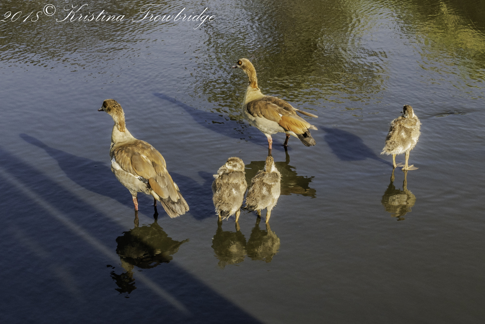 Egyptian geese with chicks & shadows