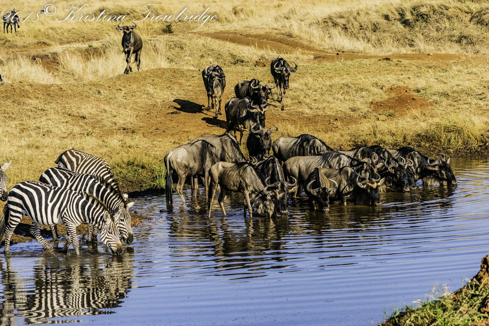 Bearded Wildebeests & Zebras drinking
