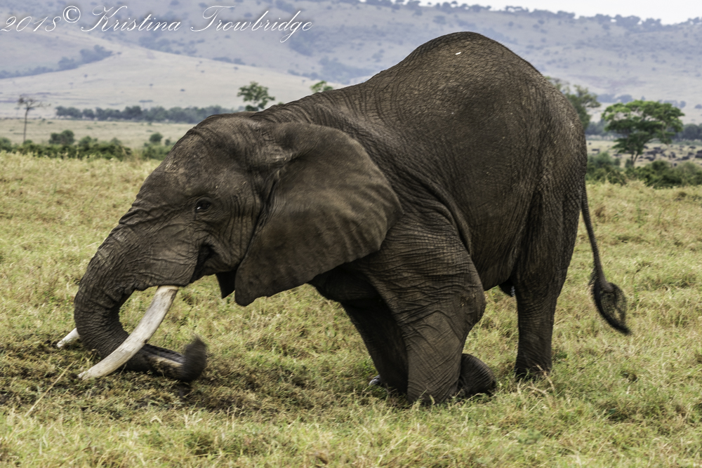 Elephant bull attacks termite mound