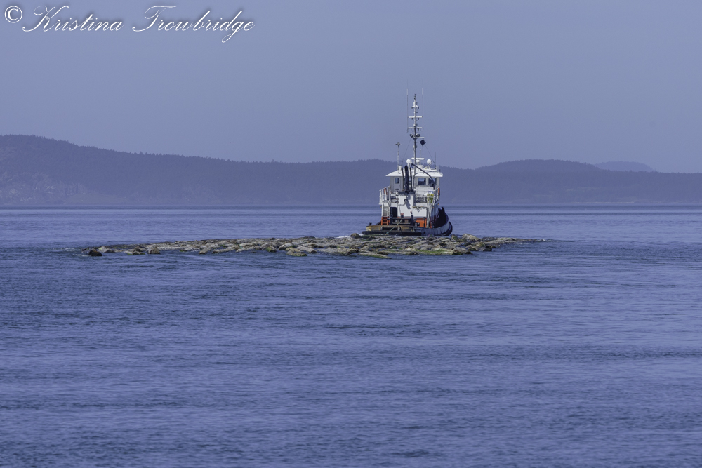 Tug pulling logs