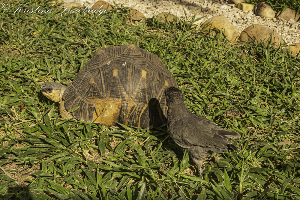 Greater Vasa Parrot with a Radiated Tortoise