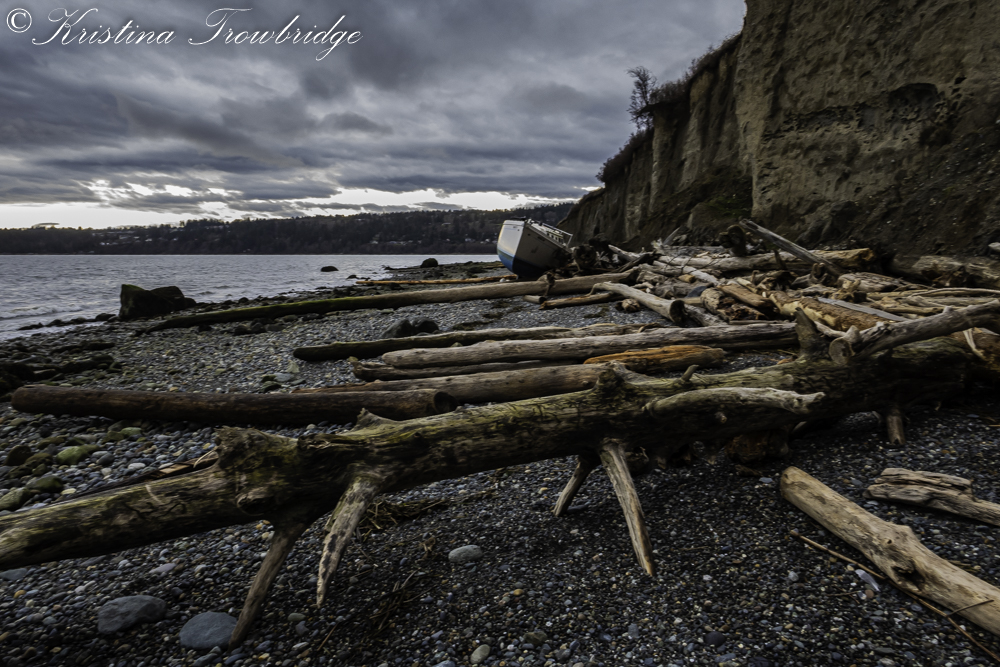 A walking log on legs and beached sailboat