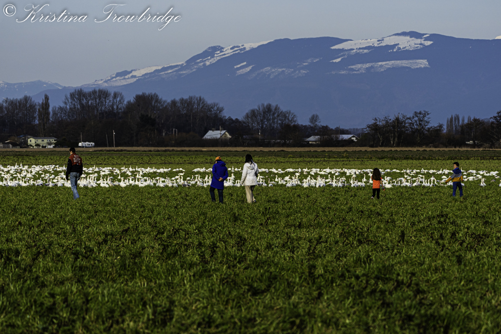 Family harassing the Snow Geese to fly