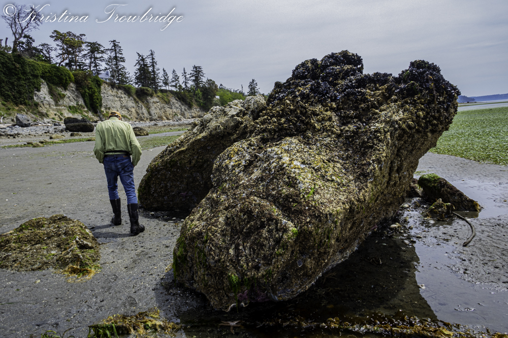 Big rocks are exposed at low tide