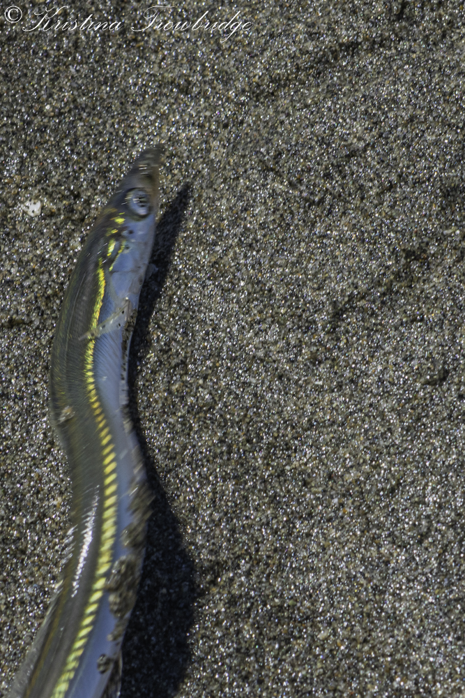 A Sand Lance emerging from the mud hole