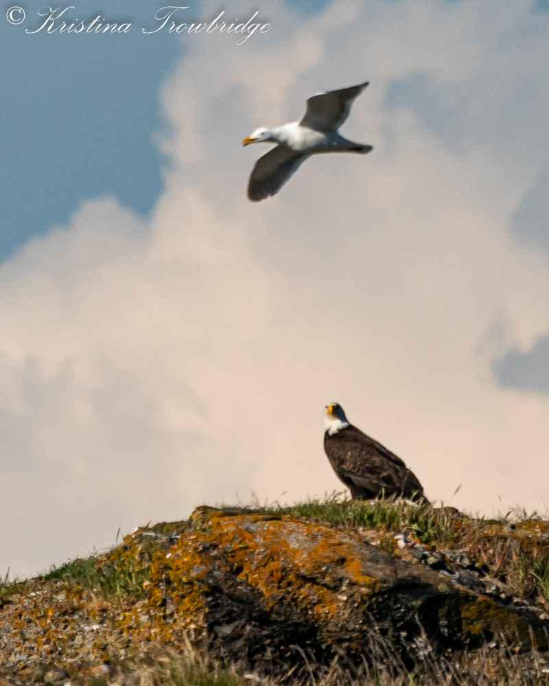 Bald eagle harassed by gulls