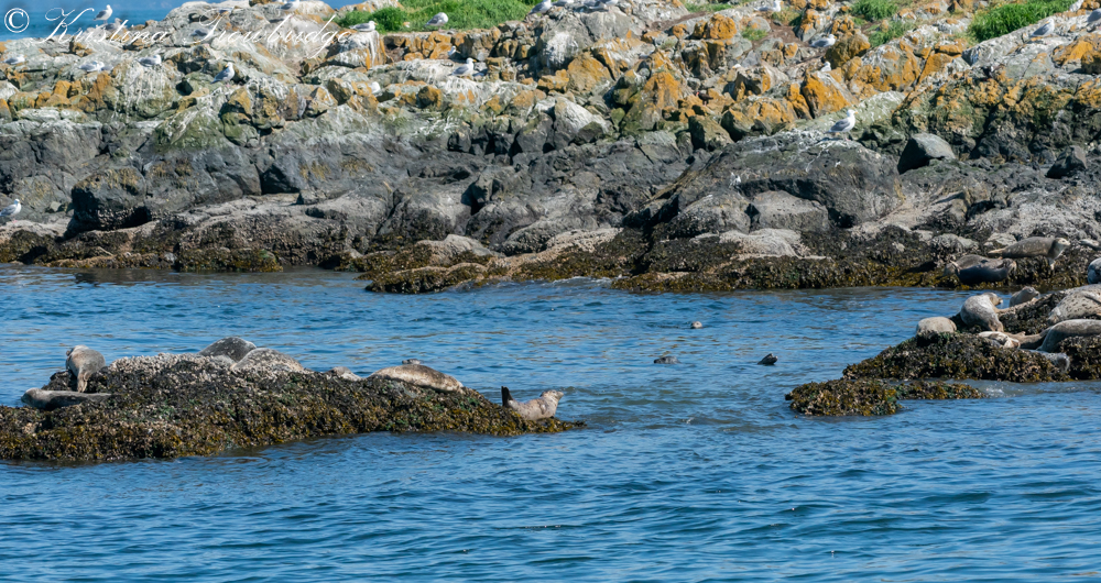 Pointer Island, gulls and harbor seals