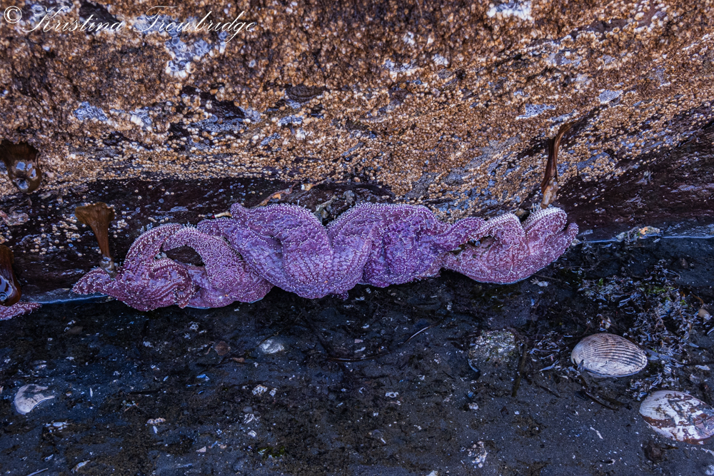 Sea stars in the shade under a rock