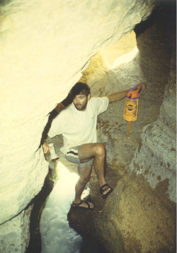 Exploring  cave cut by stream