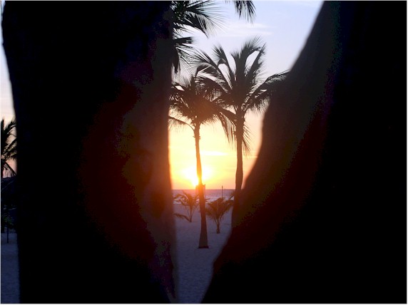 Aruba sunset through the palm trees