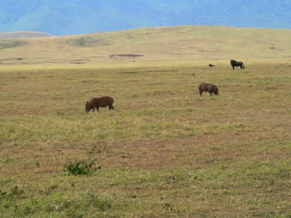 Warthogs grazing