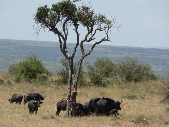 Is there shade under this desert date tree for all these buffalos?
