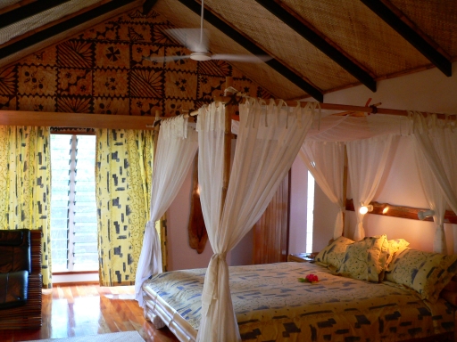 All bures have queen size beds with white mosquito net canopy
