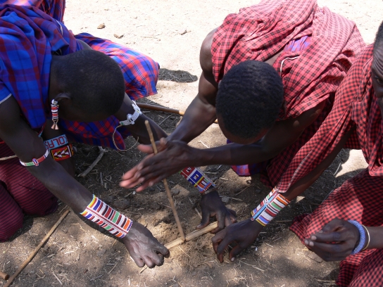 turning a stick into a depression in another stick of wood