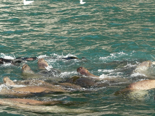 Steller Sea Lions feeding on bait ball