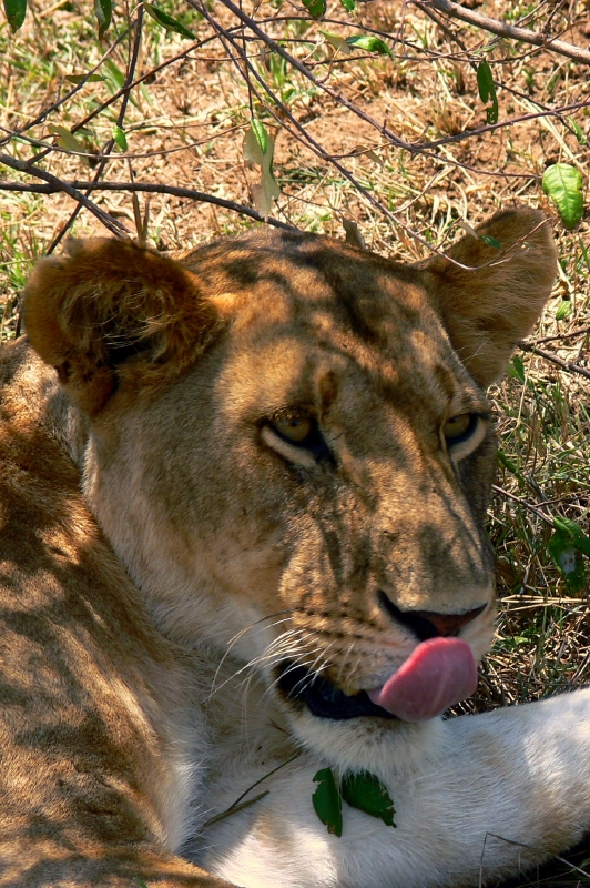 lioness tongue out