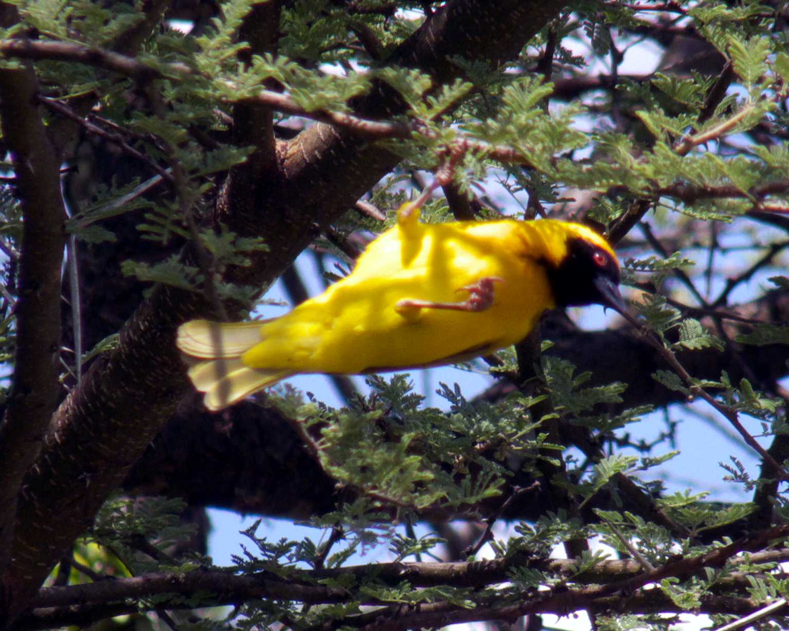 Lesser Masked Weaver hanging on