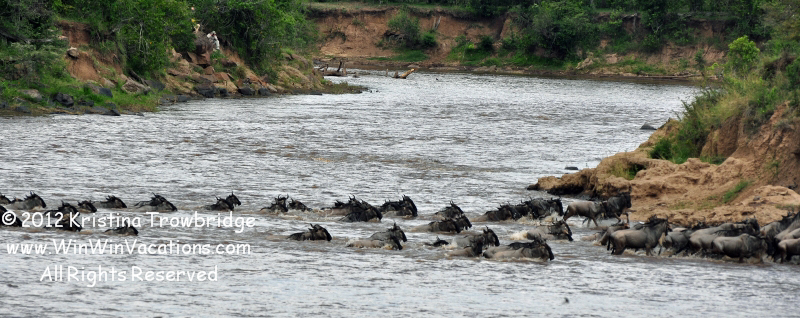 Wildebeest crossing the Mara River