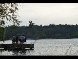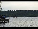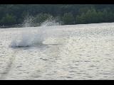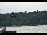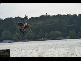 Greenlake bikers jumping off a ramp into the lake