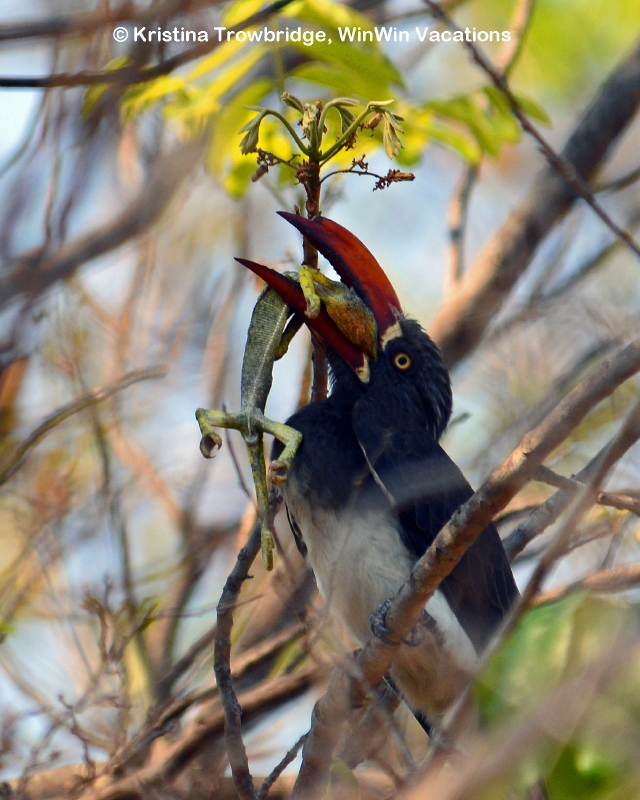 Crowned Hornbill with Chameleon