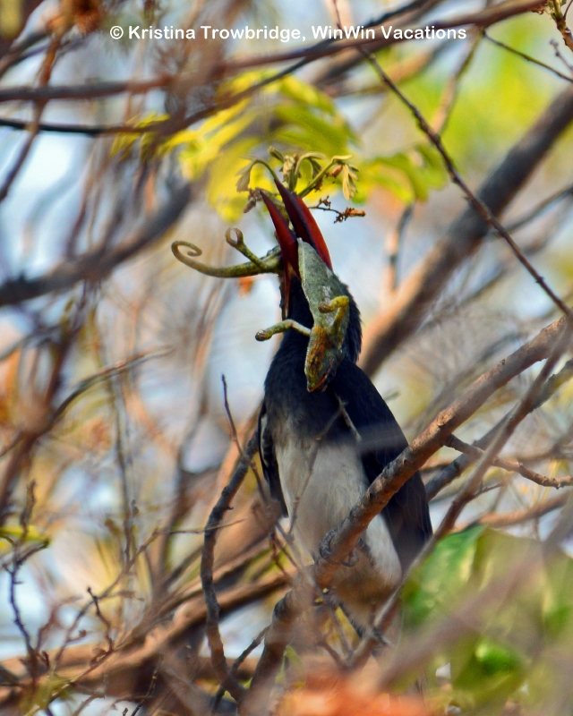 Crowned Hornbill with Chameleon