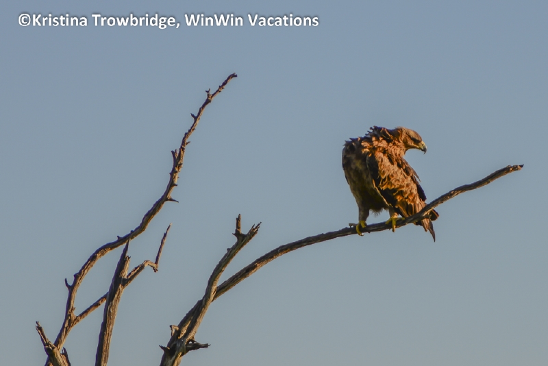 Tawny eagle at sunset