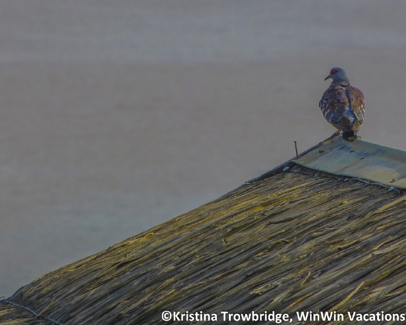 Speckled pigeon on roof