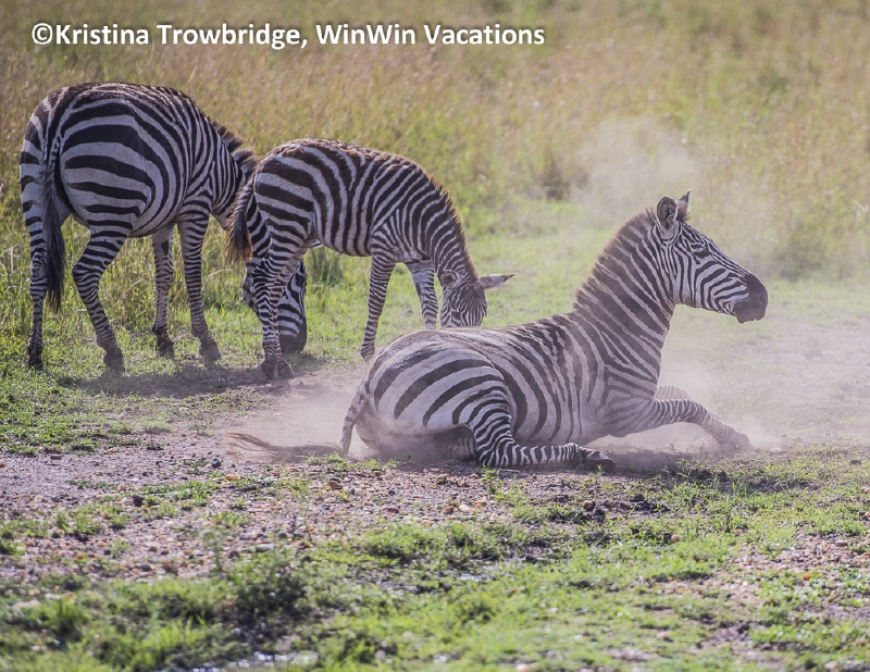zebras dust bathing